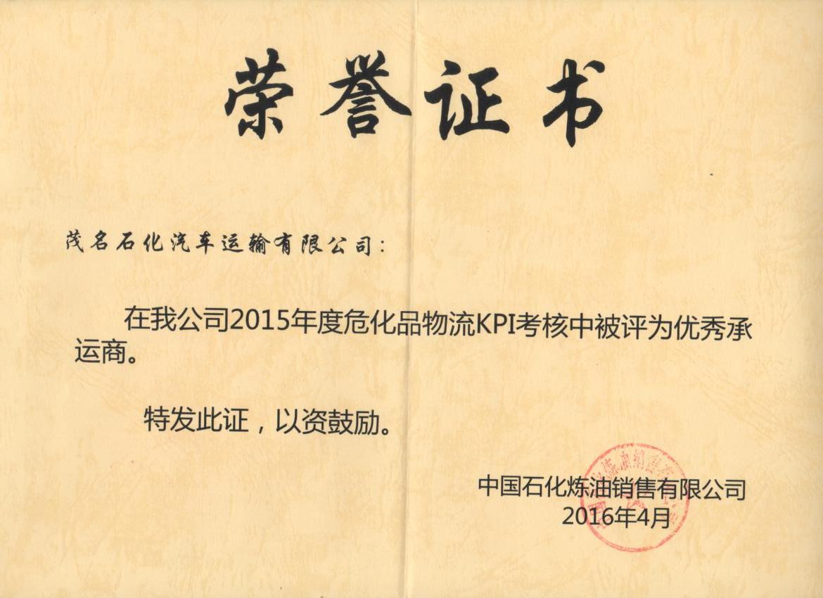 2015年度中石化優(yōu)秀承運商